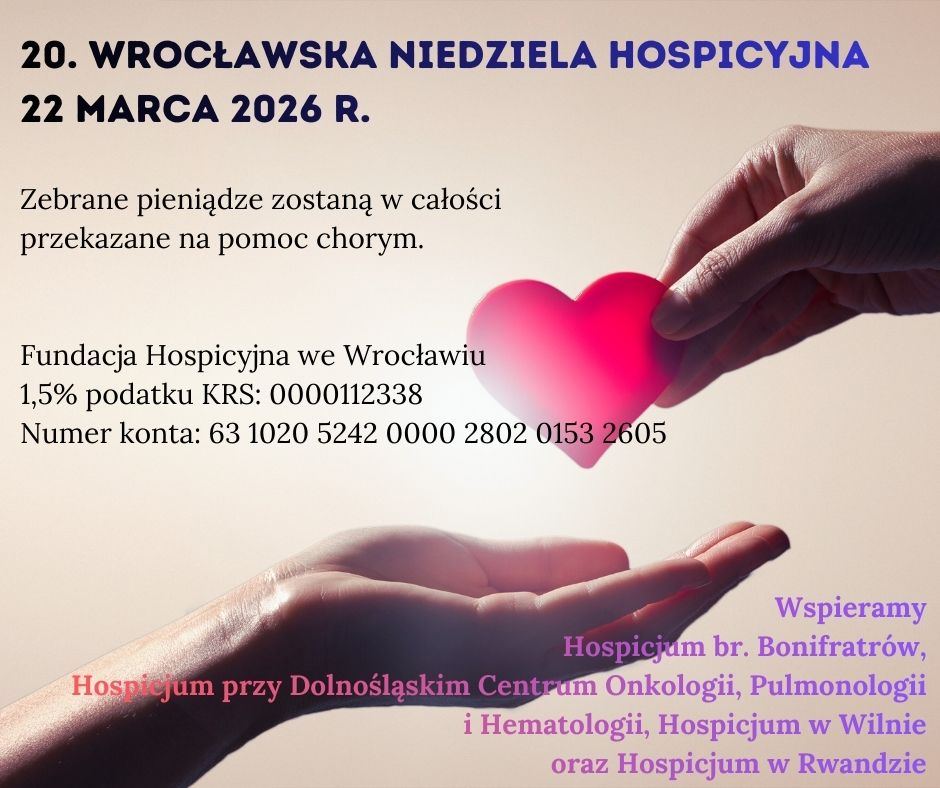 W tym roku już po raz 20. zbieramy środki na wsparcie podopiecznych wrocławskich hospicjów dla dorosłych. Nasi wolontariusze 22 marca 2026 r. będą kwestować pod kościołami wrocławskich i wybranych podwrocławskich parafii. Z góry dziękujemy wszystkim, którzy zechcą wesprzeć…
